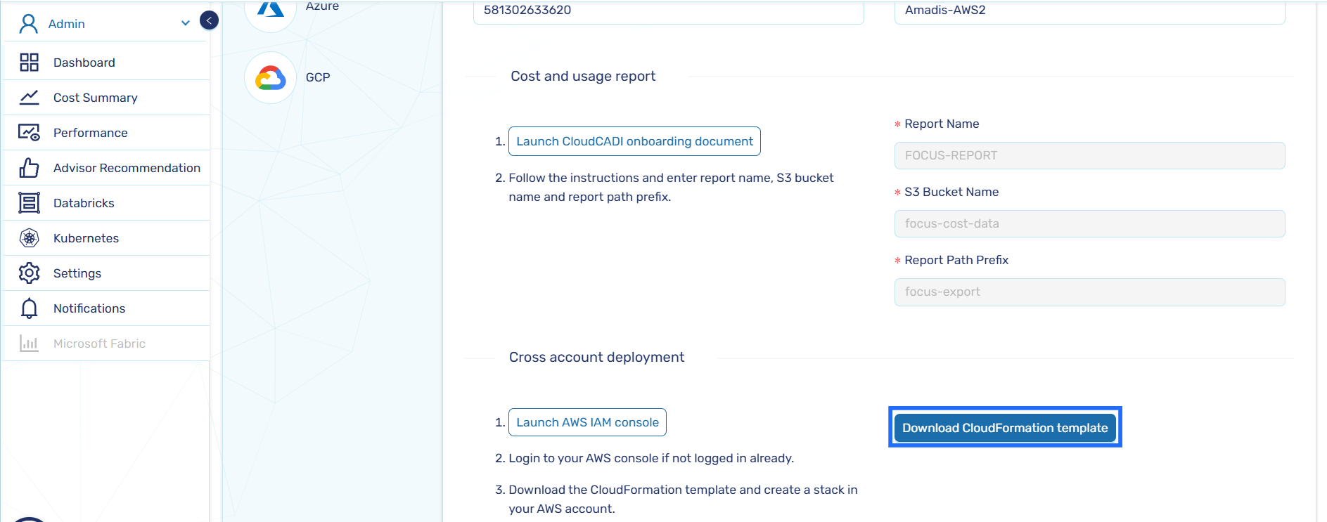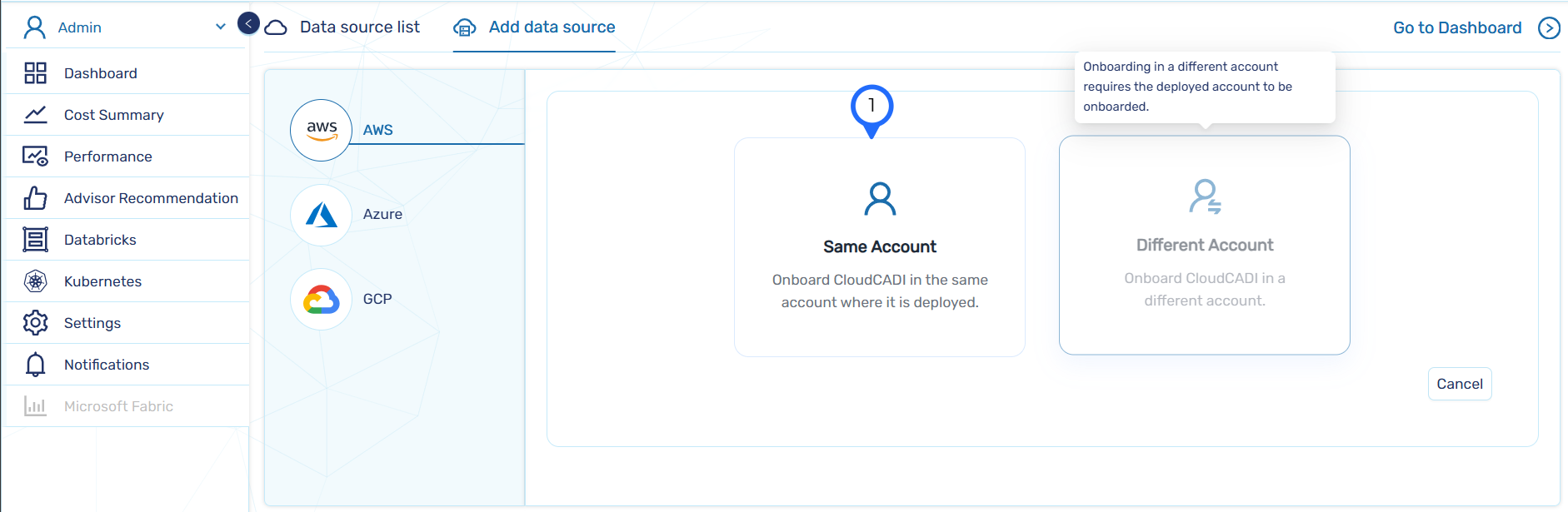 Same Account – Used to onboard an AWS account where CloudCADI is currently deployed.