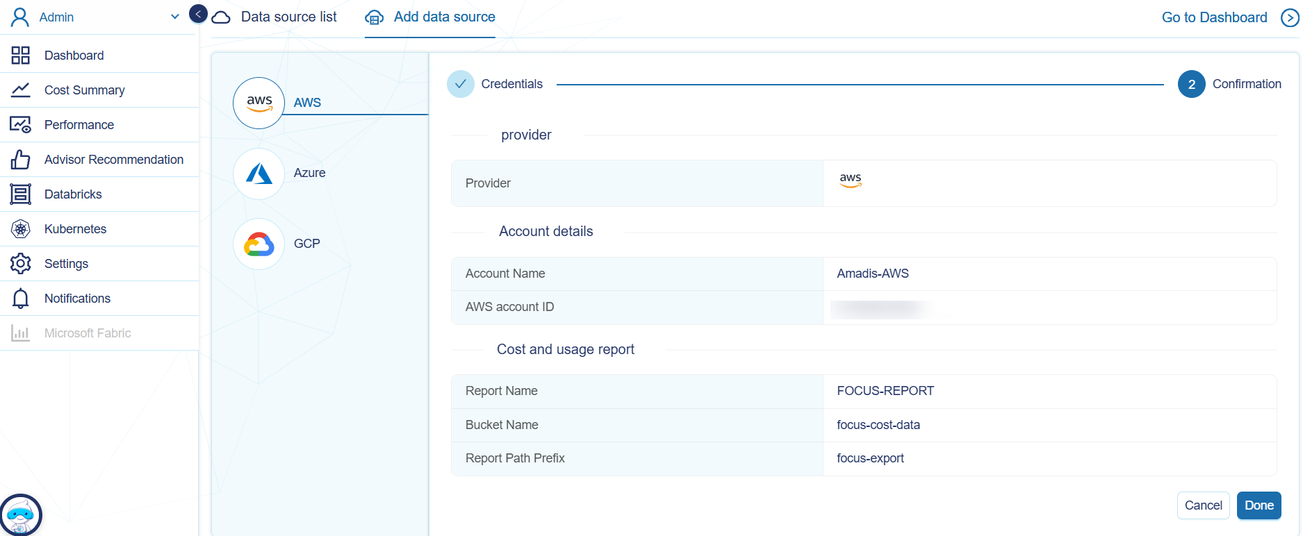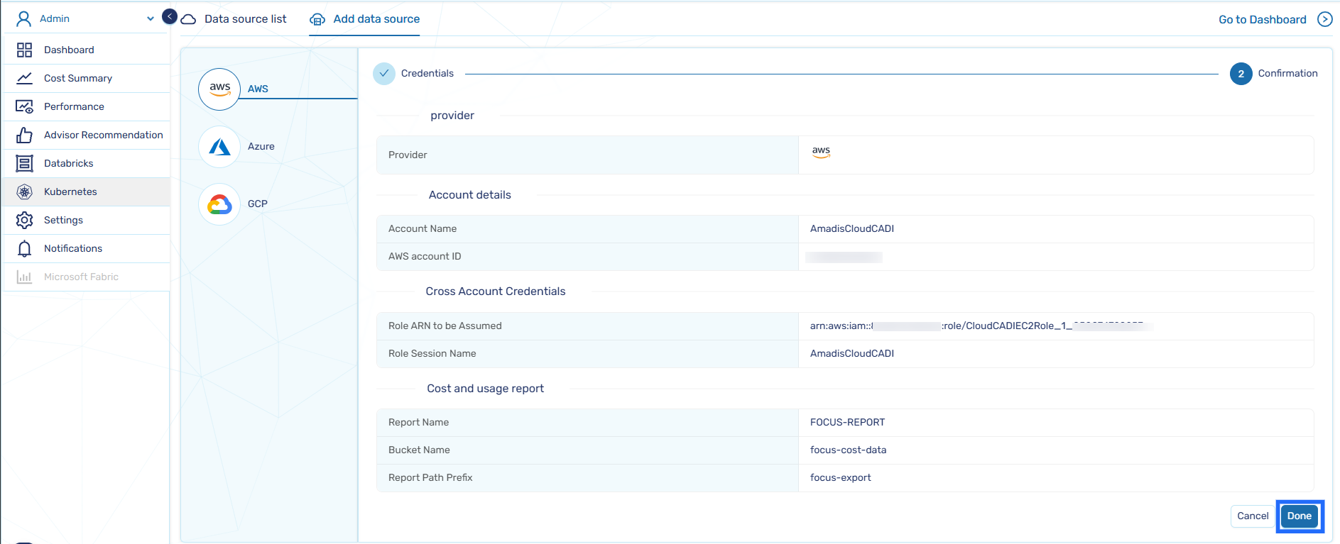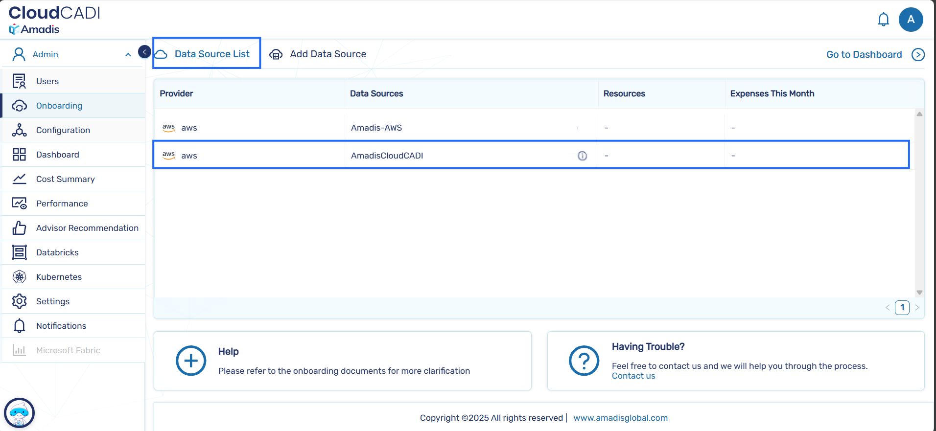 Navigate to the Data Source List tab and verify that the AWS account has been successfully onboarded.
