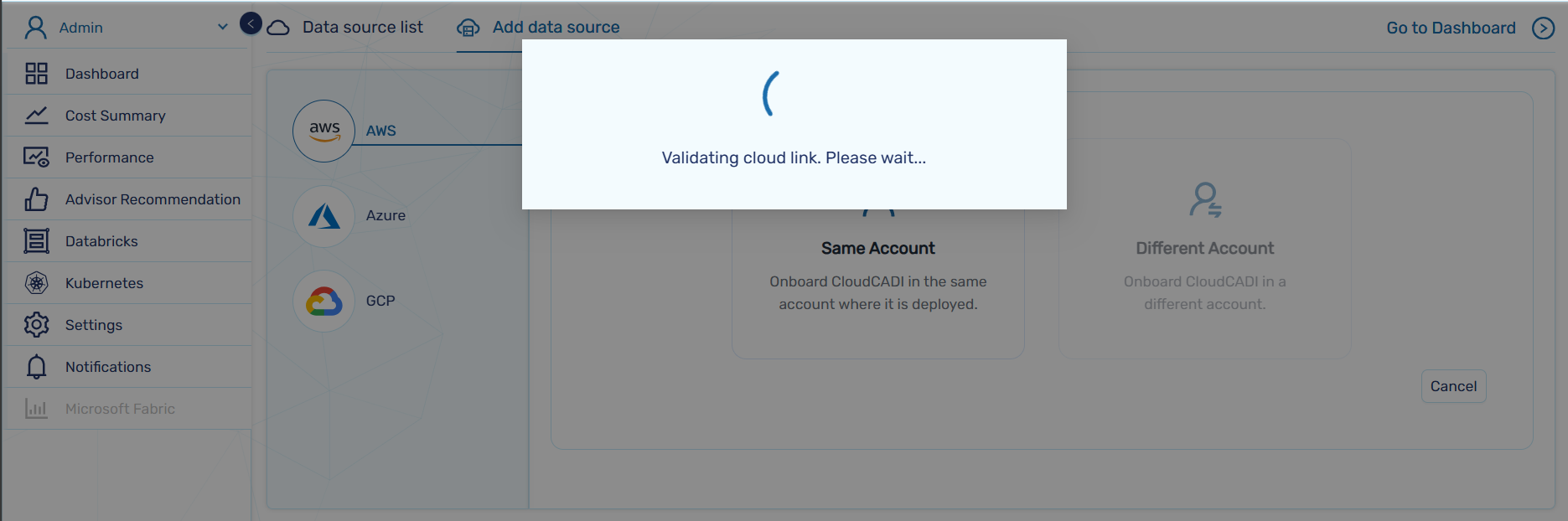 Different Account – Used to onboard an AWS account different from the one where CloudCADI is deployed.