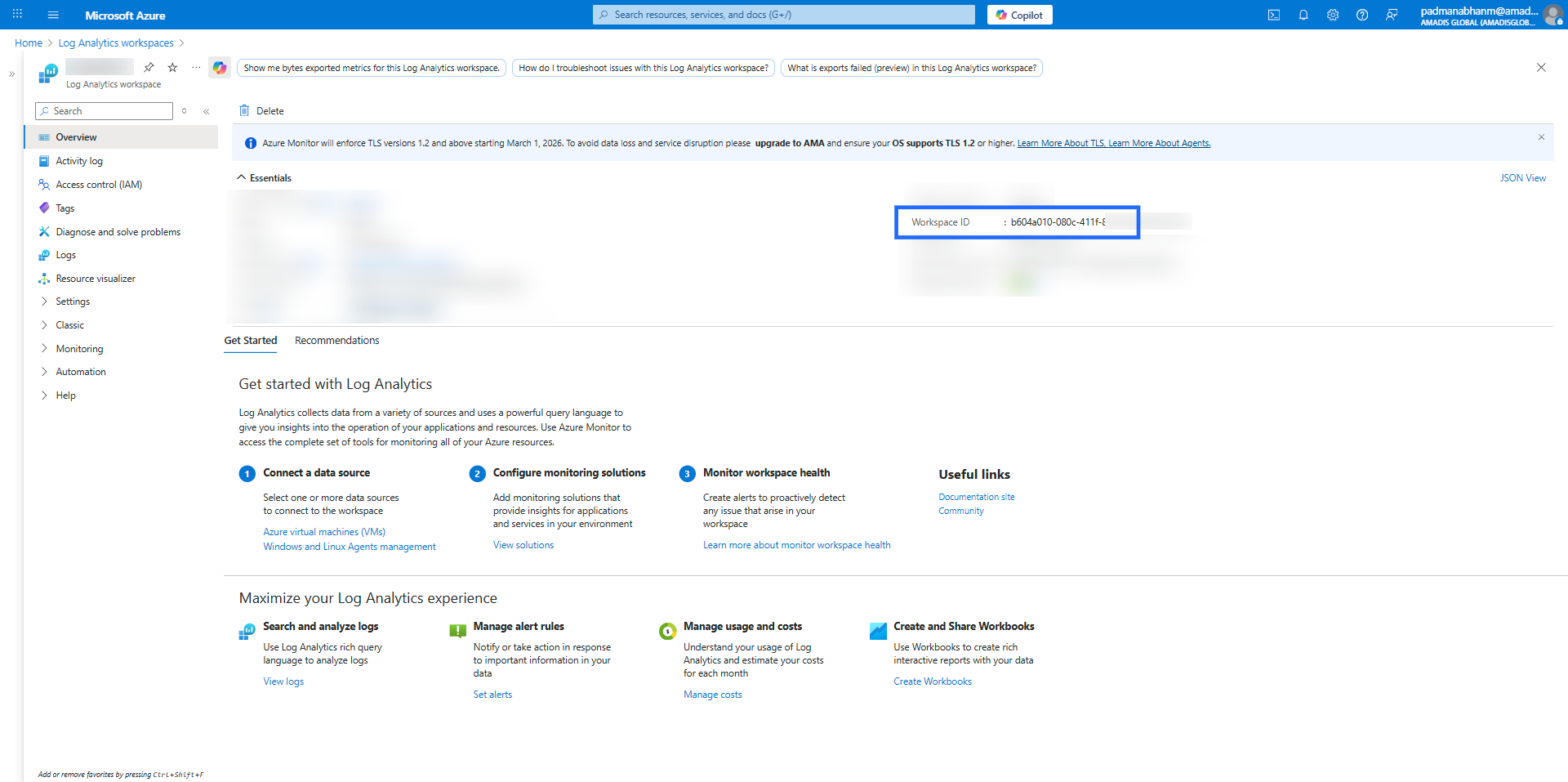 - Get the Workspace Id from Azure portal.