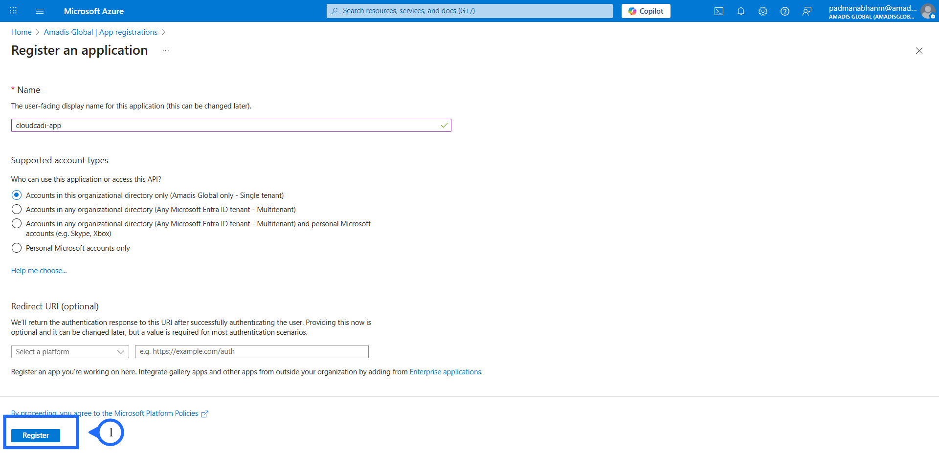 Enter the required credentials. Get the required credentials from the cloudCADI azure onboarding page.