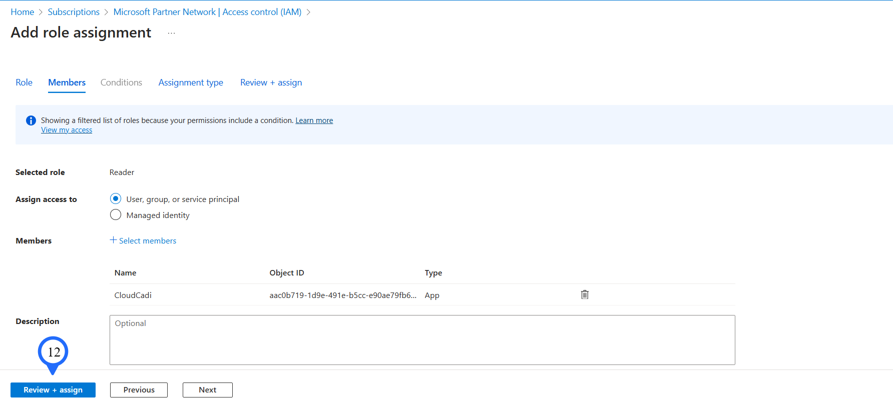 Select Assign access as "User, group, or service principal".