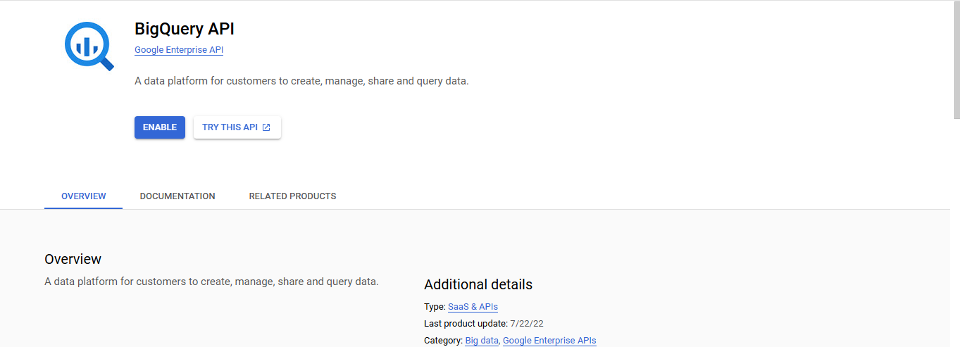 1. Enable the BigQuery API if it is not already enabled.
