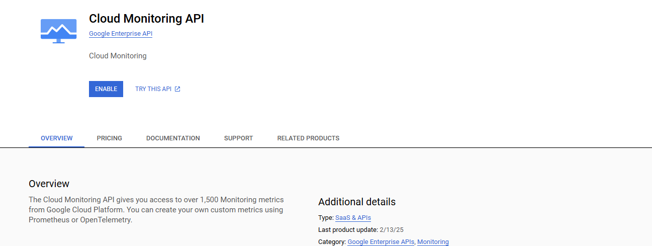 1. Enable the Cloud Monitoring API if it is not already enabled.