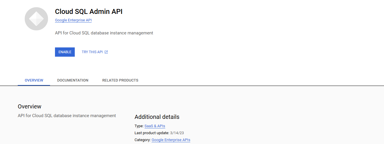 1. Enable the Cloud SQL Admin API if it is not already enabled.