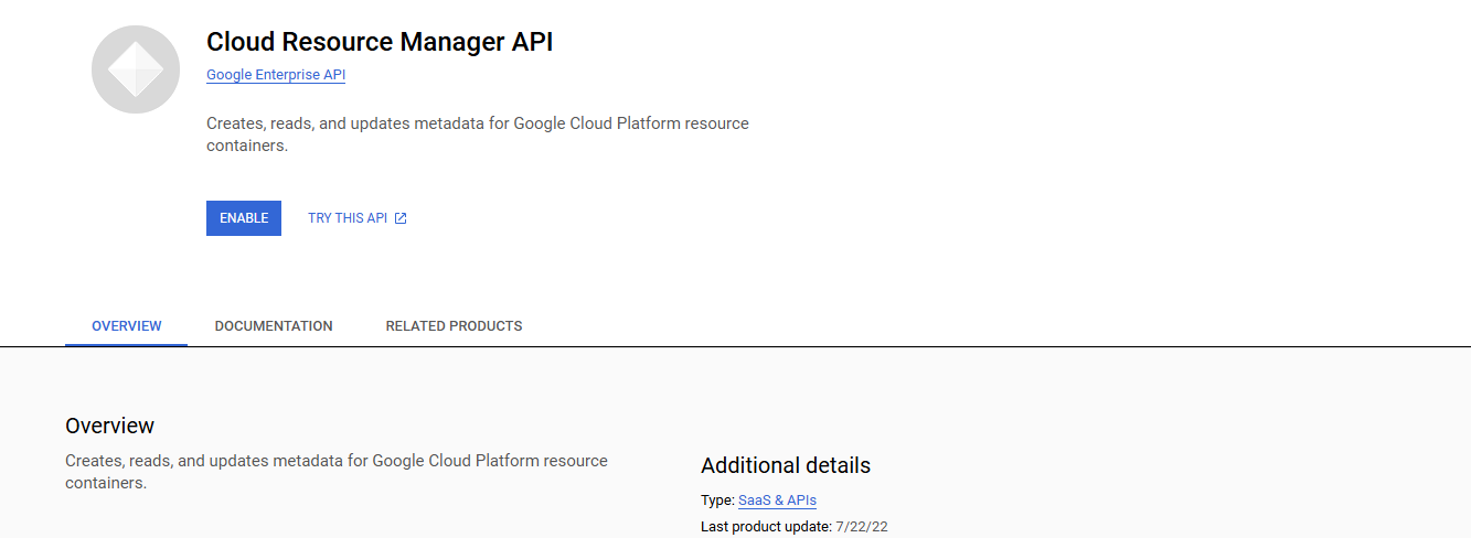 1. Enable the Cloud Resource Manager API if it is not already enabled.