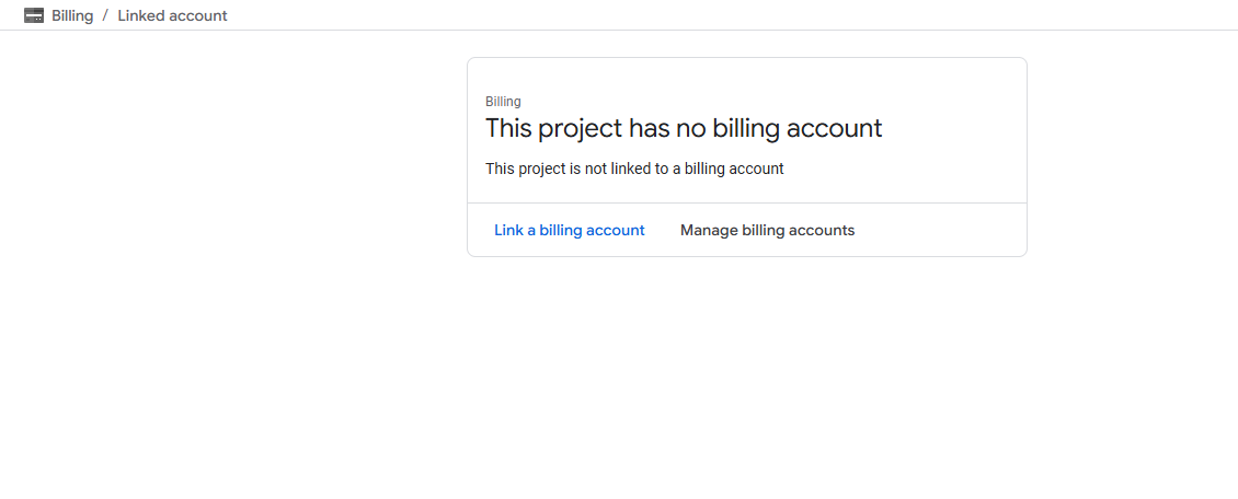 1. If the project is not linked to any billing account, link it to an existing billing account. If no billing account exists, create one first and then link it.