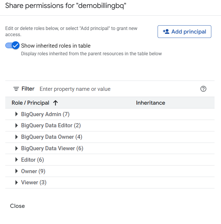 • roles/bigquery.resourceViewer