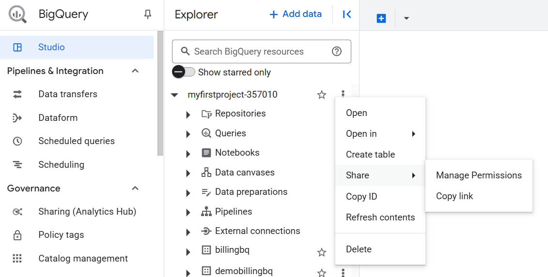 1. Go to BigQuery in Google Cloud Console. In the Explorer panel, find the dataset. specify Report