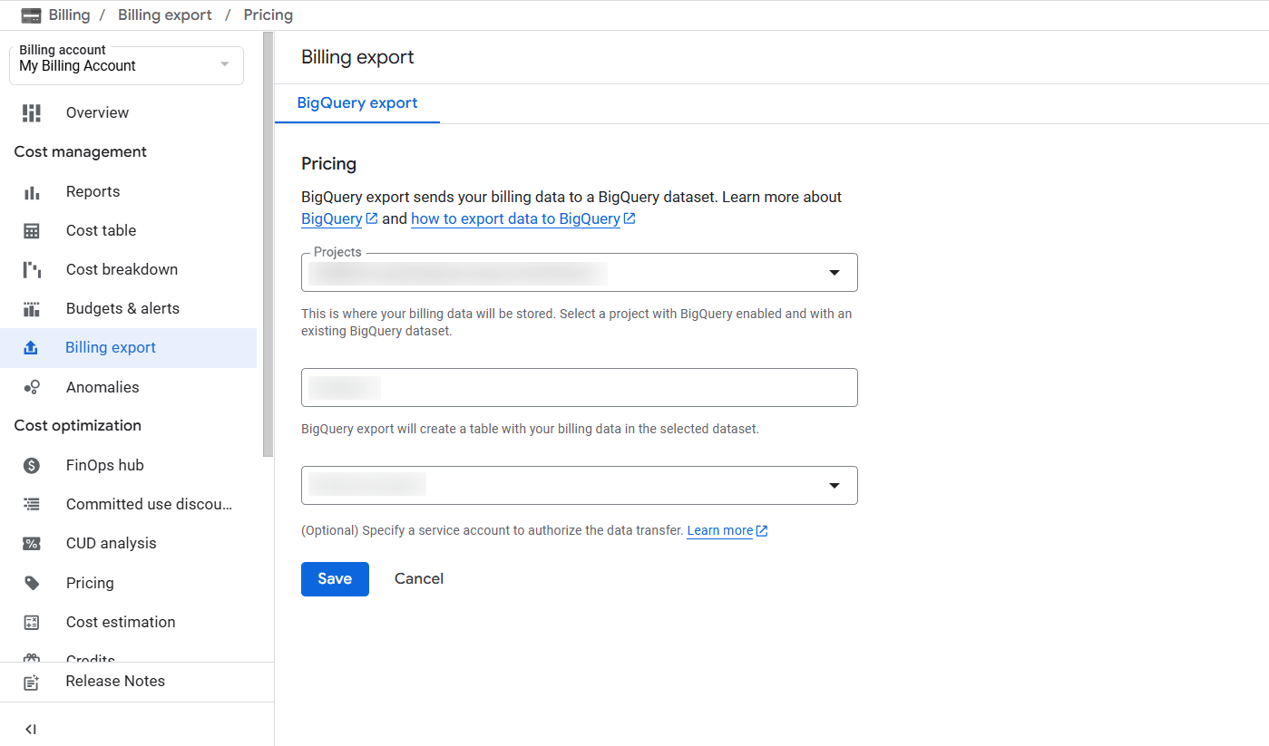 Step 2 - Enable export of your Cloud Billing and Pricing data to BigQuery