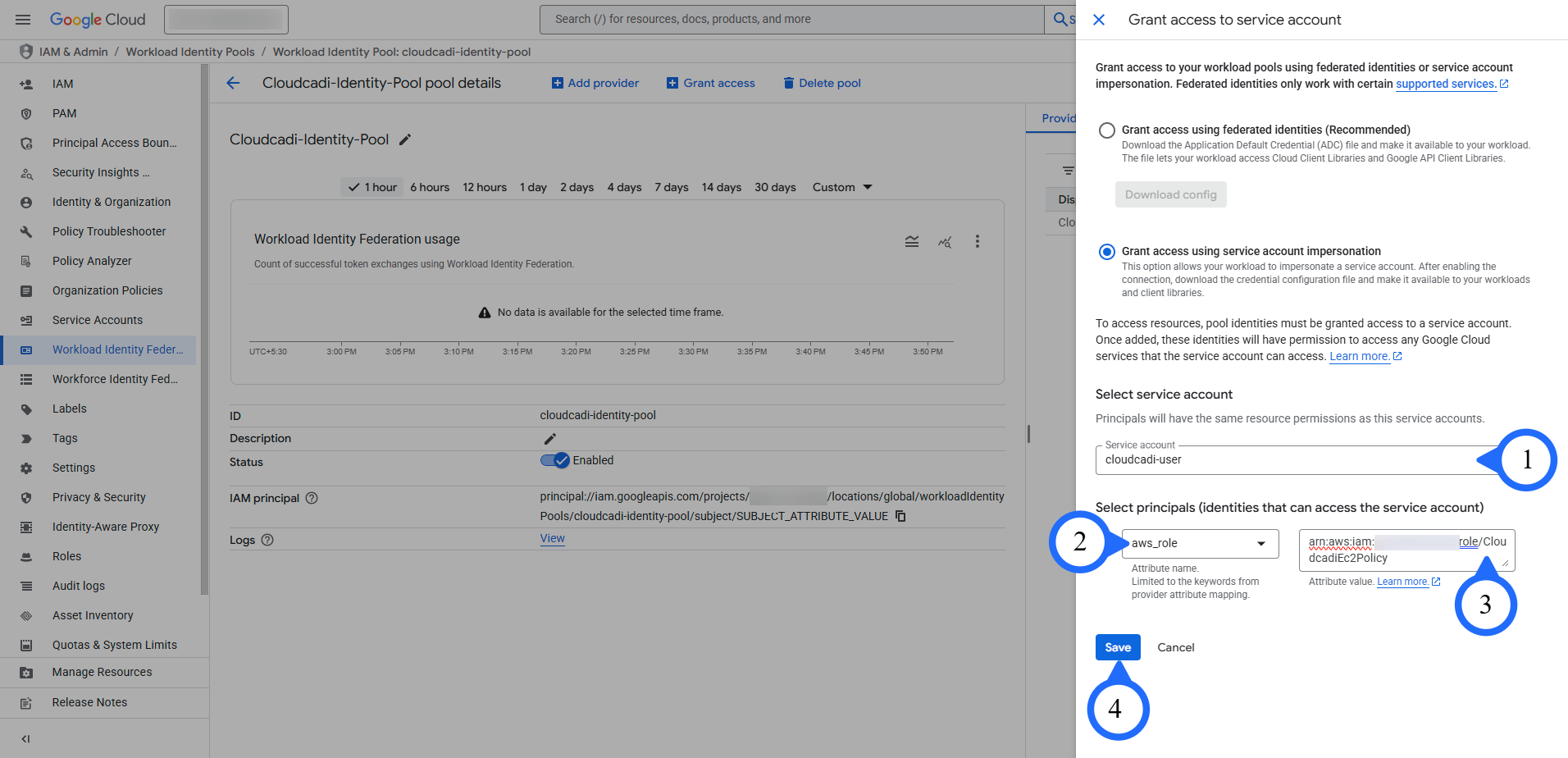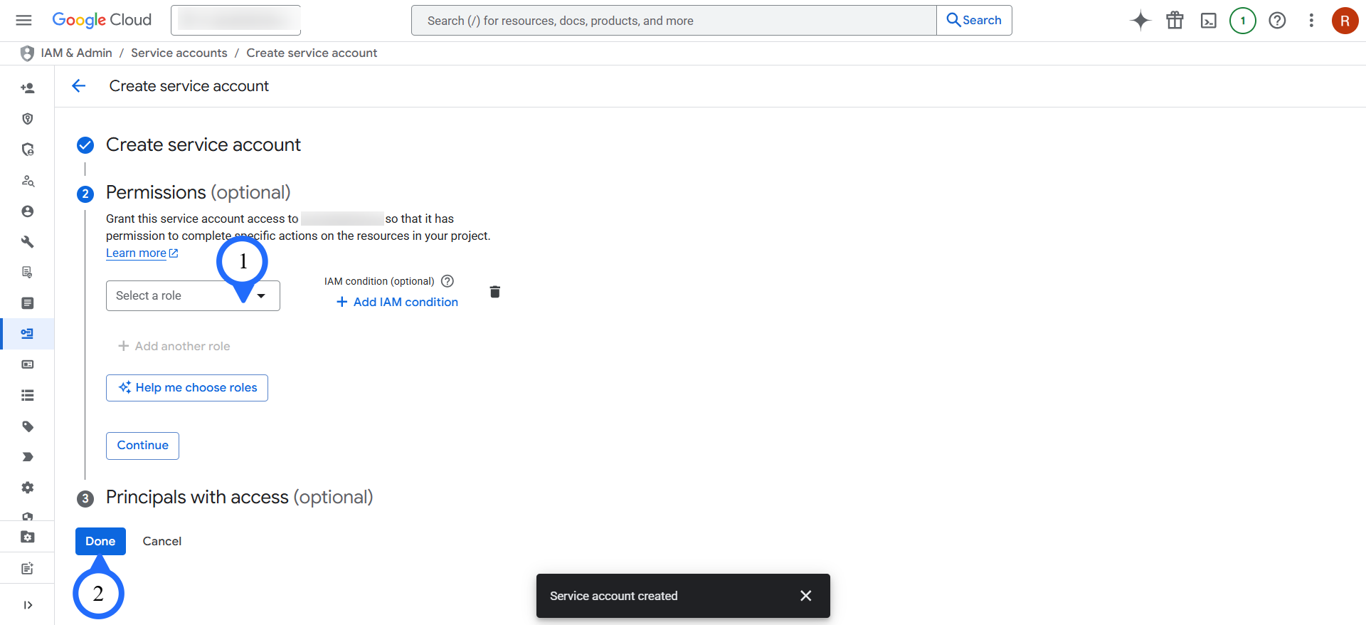 3. Select the service account you created.