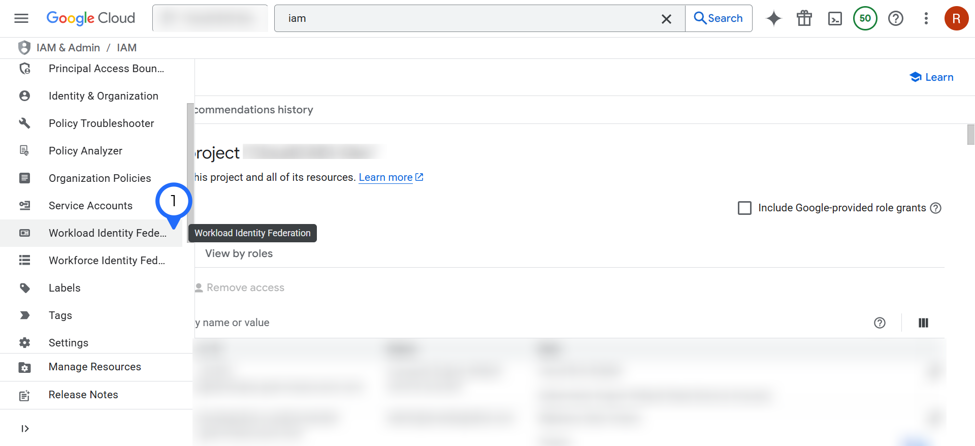 3. From the left-hand menu, click Workload Identity Federation.