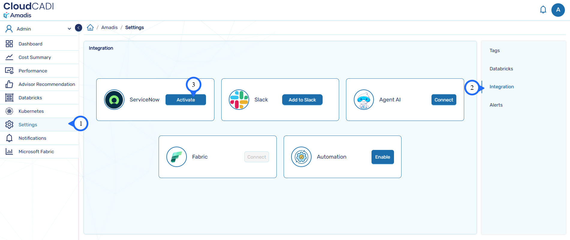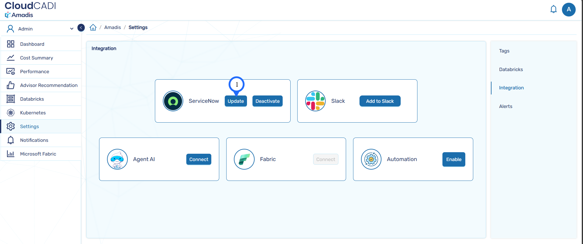 CloudCADI offers a seamless integration with ServiceNow, enabling direct notification of recommendations to your engineering team through a single action button.