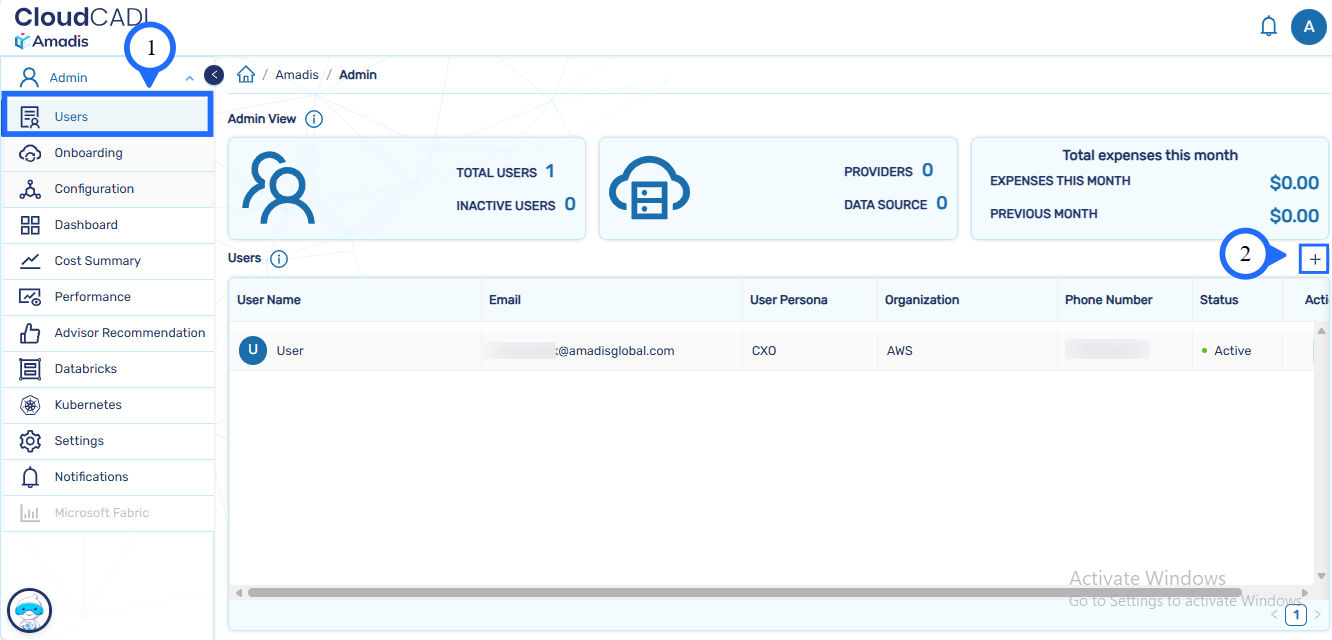 The first user who completes the sign-up process is automatically assigned the Admin role.